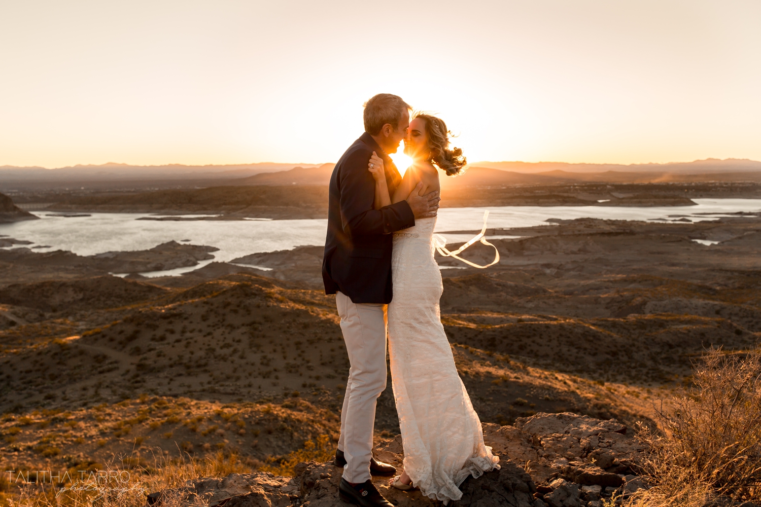 Elephant Butte Elopement Published May 17, 2019 at 1500 × 1000 in Elephant Butte Elopement ← Previous Next → Overlooking Elephant Butte at sunset. The bride and groom embrace as the winds off of the lake create a dramatic effect